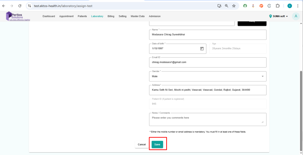 4. Fill/add patient details